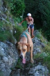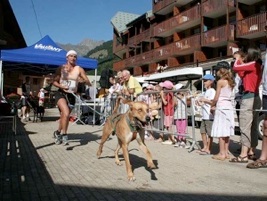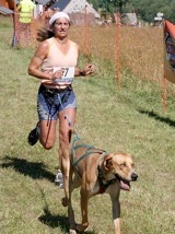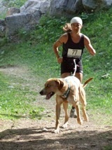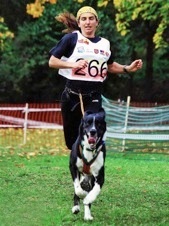 Mittlerweile bin ich doch schon einige Rennen mit Hund gelaufen, habe auch Bikejöring und Scooterrennerfahrung und möchte nun ein paar brauchbare Tipps weitergeben. Vorerst zum Laufen mit Hund. Prinzipiell ist es natürlich wichtig trainiert im Laufen zu sein - trotzdem sind Canicross (natürlich kommt es auf die Zugkraft und Zugwillen des Hundes an) und Joggen zwei fast grundverschiedene Sportarten. Das bestätigt zumindest mir mein Körper regelmässig nach dem ersten Wettkampftag. Den Muskelkater, den ich regelmässig habe könnte ich natürlich umgehen, wenn ich das Tempo meines Hundes mitlaufen könnte, dies ist mir aber unmöglich, also werde ich gezogen, und wenn ich das nicht auch regelmässig trainiere, also die exzentrische (abbremsende) Muskelarbeit übe, (so wie auch beim Bergablaufen), dann werde ich immer wieder am ersten Wettkampfabend stöhnen und es wird mir immer wieder unvorstellbar sein, am nächsten Tag