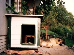 Wegen den Hunden zogen wir aufs Land, zwei Hunde in der Stadt waren aufregend, aber doch sehr stressig. Versuche, auch Spirou eine Lebensgefährtin zu gönnen, endeten kläglich, er akzeptierte keine Katzen neben sich, ich bin überzeugt er dachte, er sei ein Hund. Er ging mit uns spazieren, nahm die Hundehütte in Beschlag, unsere mittlerweile drei Hunde waren seine besten Kumpels.