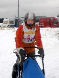 Milena ist unsere Nichte. Also- die Tochter meiner Schwester. Leider ist sie ein Franfurter Stadtkind und wohnt mit 50 km Entfernung ein bißchen weit weg von uns. Wir nutzen die Schulferien zu gemeinsamen Training mit den Hunden. Viel Gefühl für Tiere und Sportlichkeit liegt Milli in den Genen. Sie hat auch einen eigenen Hund, einen Tibet-Terrier namens Trulle, die auch viel Zeit mit uns verbringt und die, wenn sie uns besucht, alle Sofas beherrscht. Milli spielt Geige und Fussball- so weit G8 noch Zeit lässt. Ihren Schulweg bewältigt sie teilweise mit dem Tretroller, also ist ein Start in der Scooterklasse naheliegend. Auch der Schneesaison steht nach einem Schlittenfahrseminar bei Thomas Gut nichts mehr im Wege. Erste Erfolge in