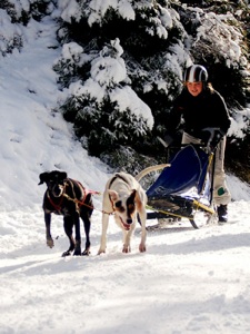 Milena ist unsere Nichte. Also- die Tochter meiner Schwester. Leider ist sie ein Franfurter Stadtkind und wohnt mit 50 km Entfernung ein bißchen weit weg von uns. Viel Leidenschafft für Tiere und Sport liegt Milli in den Genen. Dank ihrer Mutter hat Milli unsere Entwicklung im Schlittenhundesport seit ihrer Geburt begleitet. Meine Schwester nutzte jede Möglichkeit uns zu begleiten. Die beiden haben auch einen eigenen Hund, einen Tibet-Terrier namens Trulle, die auch viel Zeit mit uns verbringt und die, wenn sie uns besucht, alle Sofas beherrscht. Auch der Schneesaison steht nach einem Schlittenfahrseminar bei Thomas Gut nichts mehr im Wege. Erste Erfolge in der 2-Hundeklasse mit dem Schlitten hat sie schon zu verbuchen und wurde