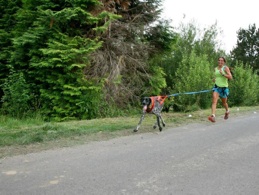 Silke Welt (geb.1966) ist von Kinderbeinen an in der Leichtathletik verwurzelt. Ihre Laufzeiten können sich auch heute noch sehen lassen. 800m in 2:13, 1500m in 4:35, 3000m in 9:42, 5000m in 16:48, 10 km in 35:04, 15 km in 55:30, Marathon in 2:58. Folgende Zeilen sind (wiedermal) der lokalen Zeitung entnommen wo Silke berichtet, dass Laufzeiten nicht alles sind: „Aber schon immer bedeutender als gute Zeiten, waren für mich schöne Erlebnisse durch das Laufen. Zum Beispiel lief ich Studentencrossweltmeisterschaften in Irland, ich werde diesen wunderbaren Schlammlauf nie vergessen. Bei einem Trainingslager am Fellhorn entdeckte ich meine Leidenschaft zum Berglauf. 1990 schaffte ich den Sprung in die Deutsche Berglaufnationalmannschaft und hatte mehrere Jahre meine sportlich, glücklichsten Jahre. Während meiner Laufzeit wurde ich immer wieder durch Verletzungen zurückgeworfen und bin zum Triathlon gekommen, habe sogar eine Langdistanz in Roth überlebt. Mittlerweile habe ich mich auf die etwas längeren Lauf-Distanzen orientiert. Inzwischen bin ich viele Marathons gelaufen (meist Landschaftsmarathons), zweimal den Jungfraumarathon und auch den Klassiker Rennsteig (76 km) habe ich mit Freude bewältigt. Zu meiner Seite gab es immer Hunde als Laufpartner- wohl die einzigen die mein Trainining still schweigend akzeptiert haben. Auch heute laufe ich noch so gut und oft es geht- meist mit Hund und ohne Leine. Den Schlittenhundesport teile ich eher nur zur Drylandsaison mit Einsätzen im Canicross. Trotz großem Bemühen und gutem Willen kann ich mit dem Schnee, der entsprechenden Temperatur und den dazugehörigen sportlichen Disziplinen keine rechte Harmonie finden (aber ich gebe nicht auf!) Zum Glück sind wir ja ein Team und jeder hat so seine Aufgaben, also muss auch jemand die älteren Hunde und das Haus hüten.
